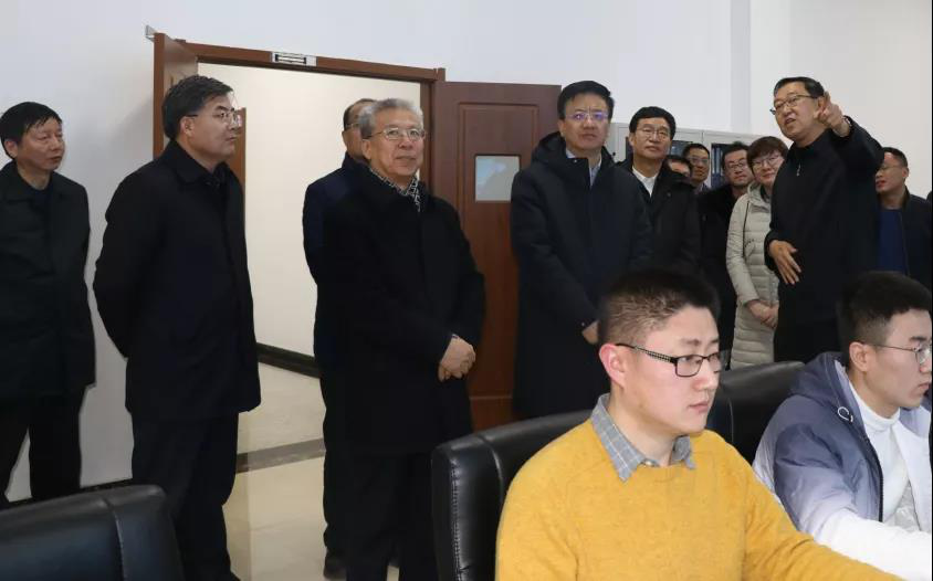 副省长贺天才在市生态环境局考察调研。省政协副主席、市委书记李正印,市长王立 伟陪同观看污染源在线监控平台演示。