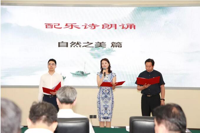 现场,中央电视台著名节目主持人刘芳菲,著名特型演员、中国国画书画研究院副院长董永,首都师范大学科德学院播音系主任郑伟一起为与会嘉宾表演了精彩的配乐诗朗诵。