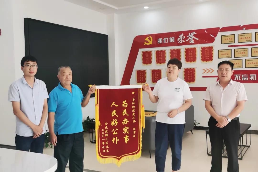 群众给朱芳华(右二)送锦旗